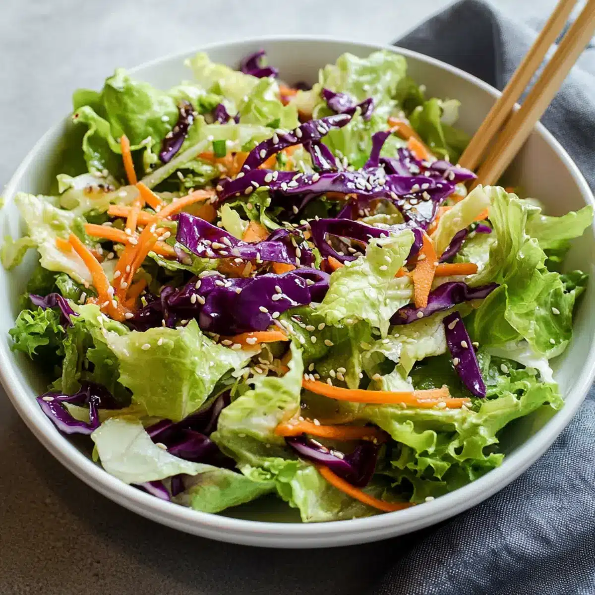 These Easy Asian Salad with Sesame Dressing components are perfect for meal prep enthusiasts! You can chop the lettuce, shred the red cabbage and carrots, and prepare the green onions up to 24 hours in advance. Simply store the prepped vegetables in airtight containers in the refrigerator to keep them crisp and fresh. The dressing can be made ahead also and stored for up to 5 days in the fridge—just be sure to whisk it again before serving. When it’s time to enjoy your salad, toss the fresh veggies with the dressing, and you’ll have a vibrant, healthy dish ready to serve with minimal effort!