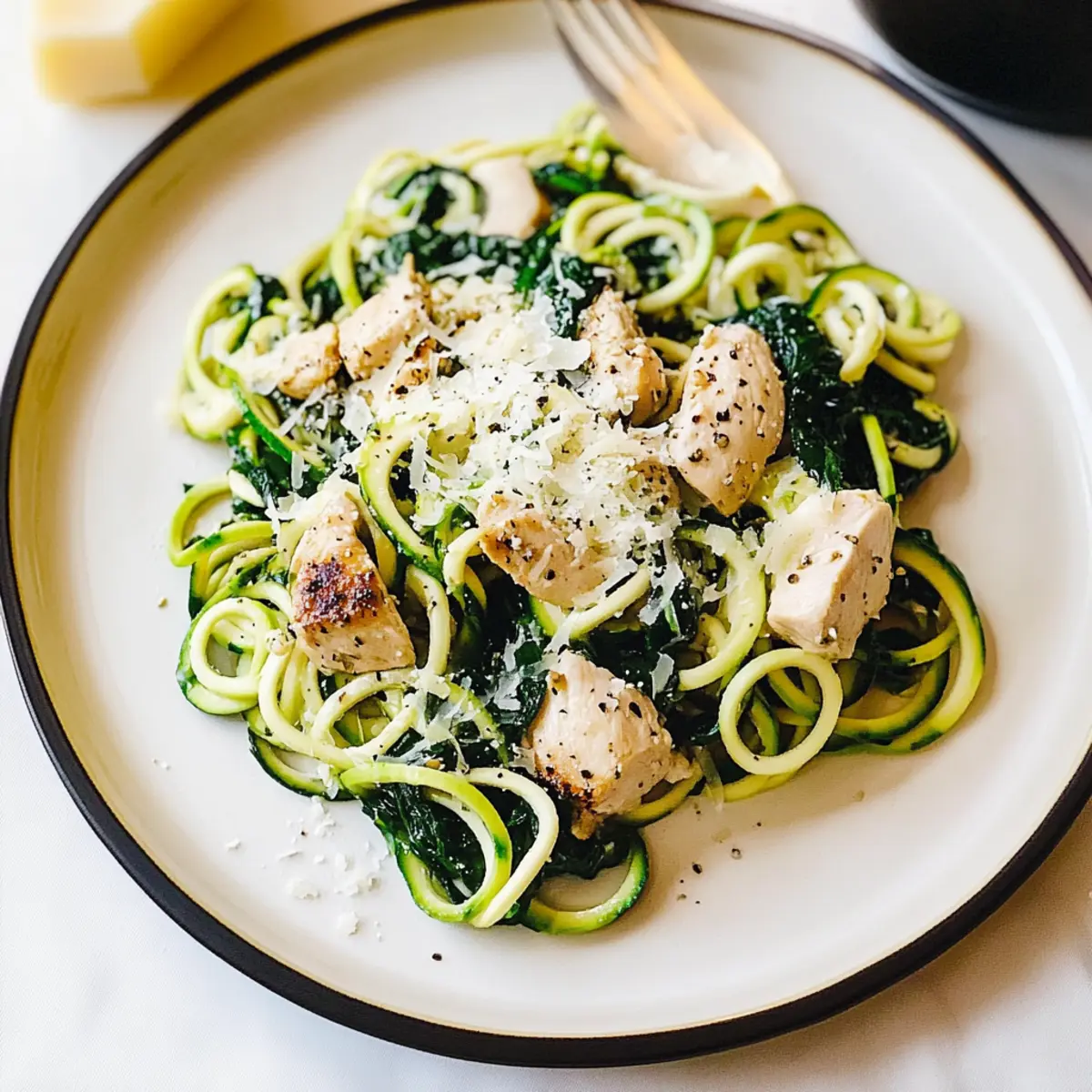 Zucchini Noodles with Chicken, Spinach and Parmesan Bliss