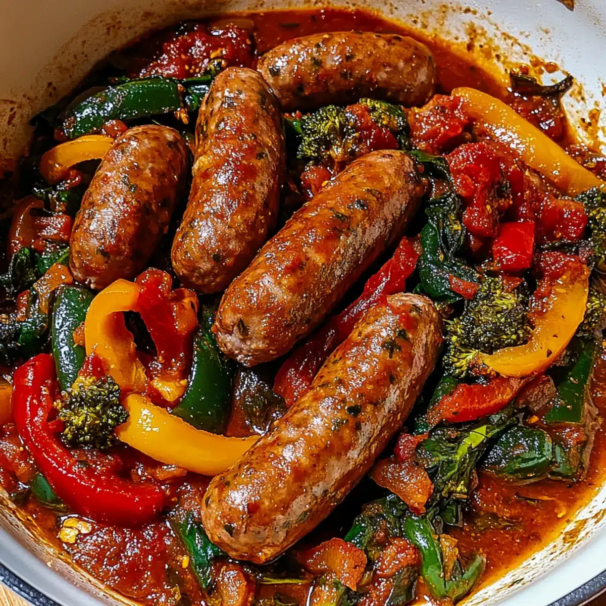 Irresistible Smothered Italian Sausage with Colorful Veggies