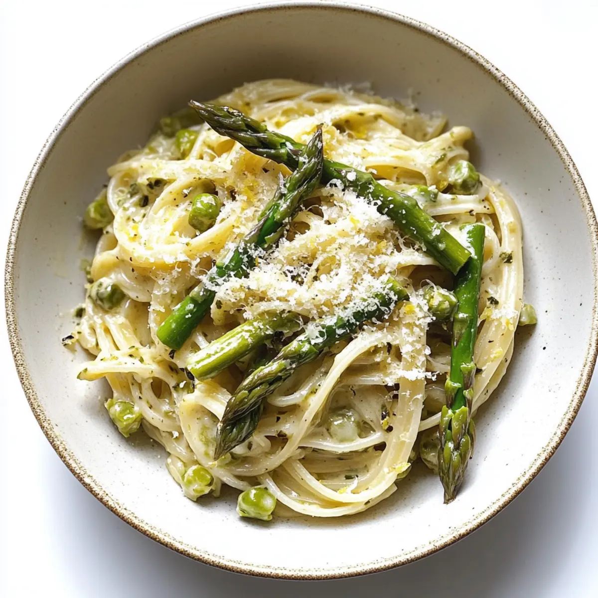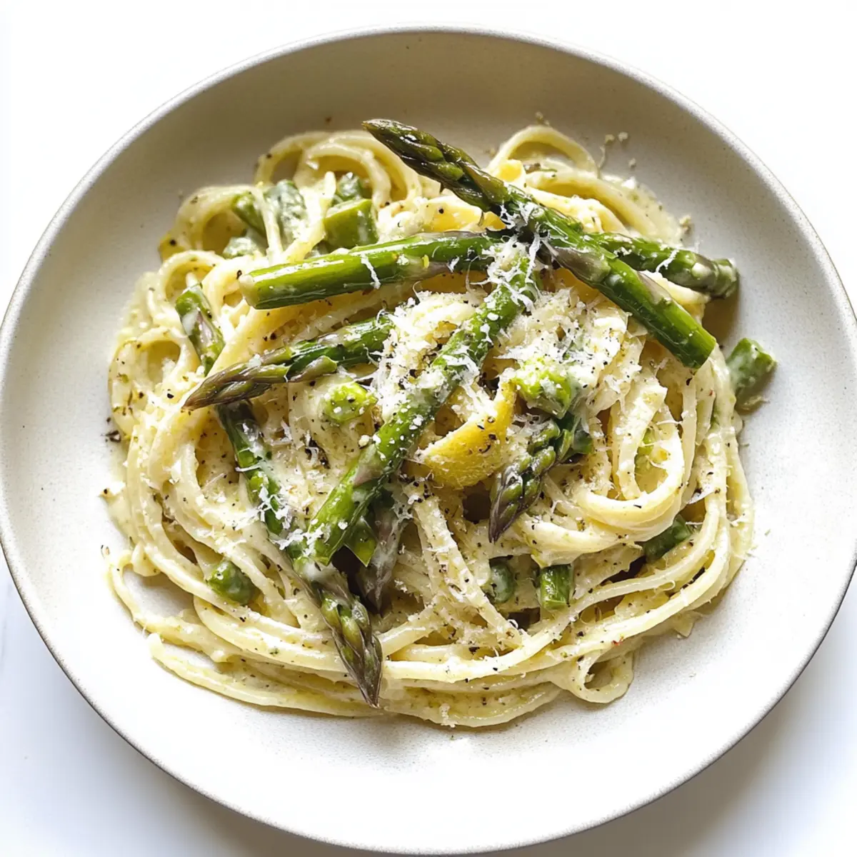 Plate your creamy asparagus pasta generously, and top with extra asparagus, a sprinkle of lemon zest, and additional grated Parmesan if desired. Finish with a touch of freshly cracked black pepper for an aromatic touch. This dish is best enjoyed warm, showcasing the vibrant flavors and creamy textures that make every bite delightful.
