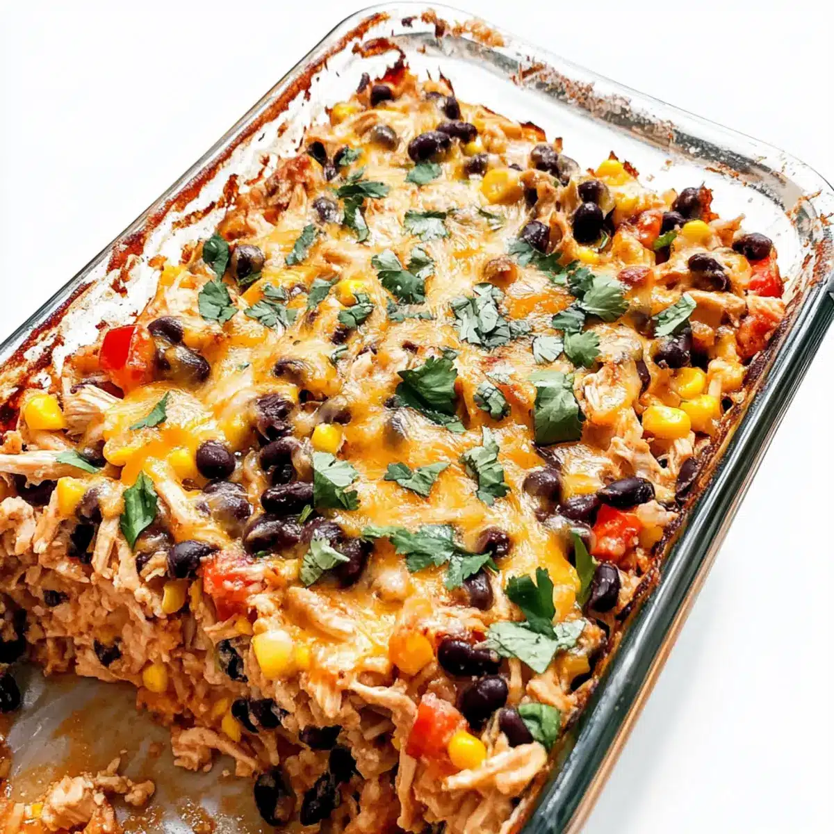 - Integrate shredded chicken, low-sodium black beans, and frozen corn kernels into the casserole mix, stirring until everything is nicely combined.