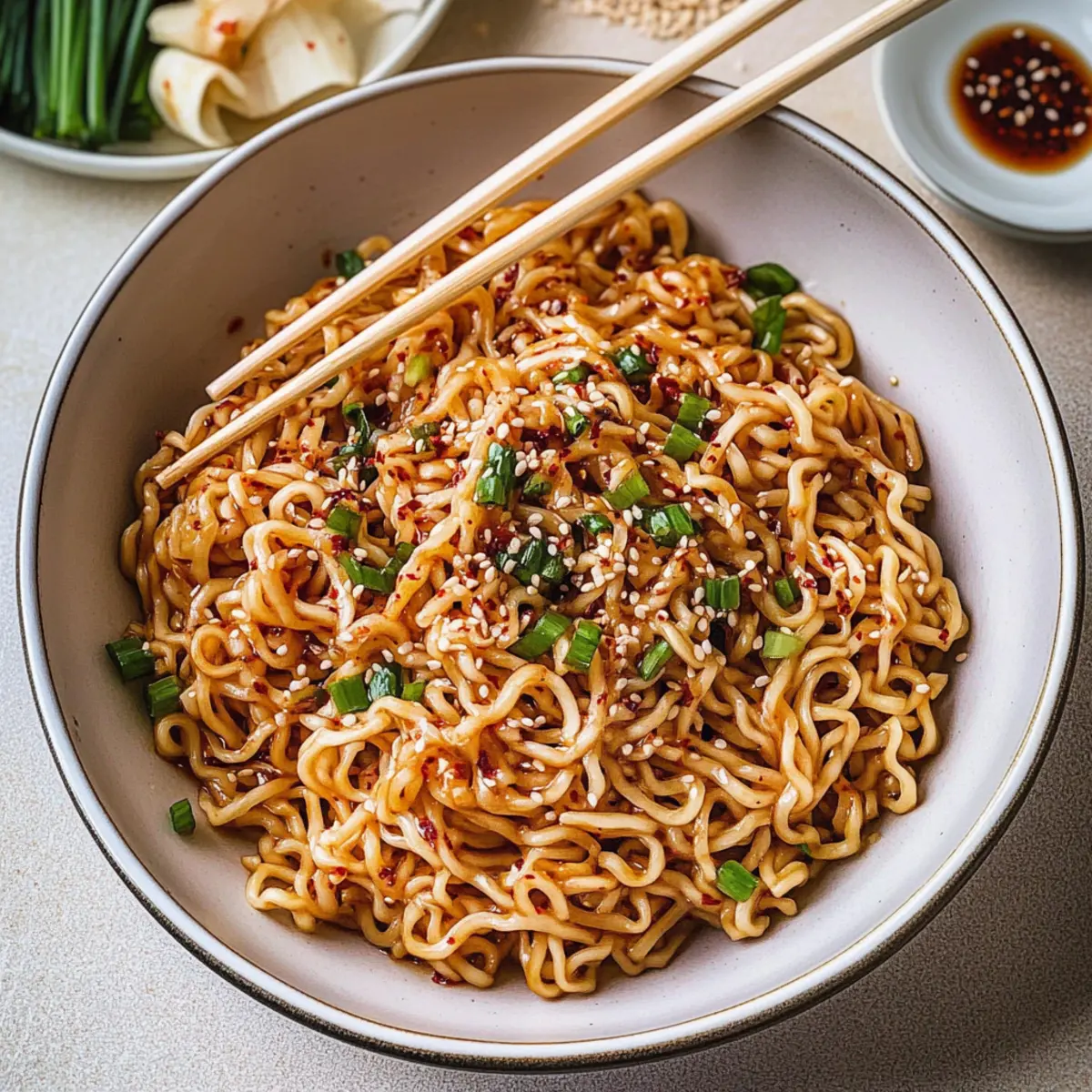 As the first droplet of oil hits the pan, an irresistible aroma begins to fill my kitchen—crisp garlic, warm shallots, and the smoky allure of chili flakes start their dance. I can’t resist coming back to this recipe for Spicy Garlic Chili Oil Noodles, especially during those busy weeknights when homemade meals feel like a challenge. This dish is a quick and easy option that transforms ordinary ramen into a deliciously addictive bowl of comfort. Plus, it’s incredibly customizable—whether you prefer it mild or pack it with heat, the choice is yours. With the vibrant flavors and delightful textures that this dish brings, it’s hard to imagine ever reaching for takeout again. How will you make it your own?