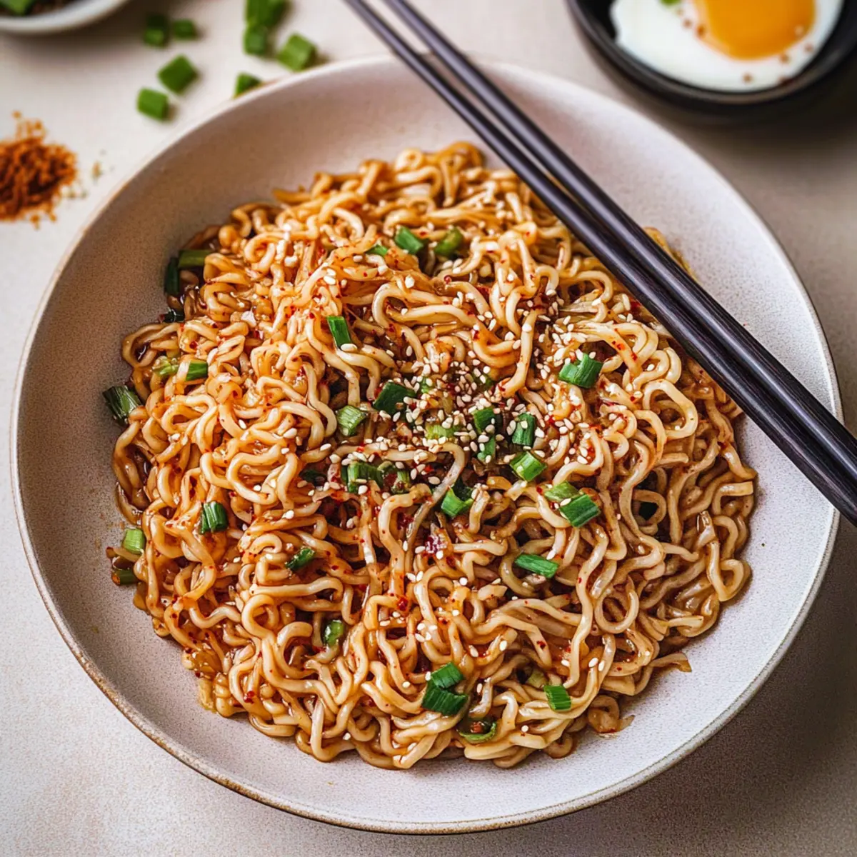 These Spicy Garlic Chili Oil Noodles are perfect for meal prep enthusiasts! You can prepare the garlic chili oil sauce up to 3 days in advance and store it in an airtight container in the refrigerator to maintain its vibrant flavors. Simply follow the first three steps of the recipe, allowing the oil to cool before refrigerating it. When you’re ready to enjoy a quick meal, cook the ramen noodles fresh, drain them, and then toss them in the pre-prepared garlic chili oil sauce, adding the sliced green onions just before serving for that fresh crunch. This way, you save time on busy weeknights while still enjoying a delicious homemade dish!
