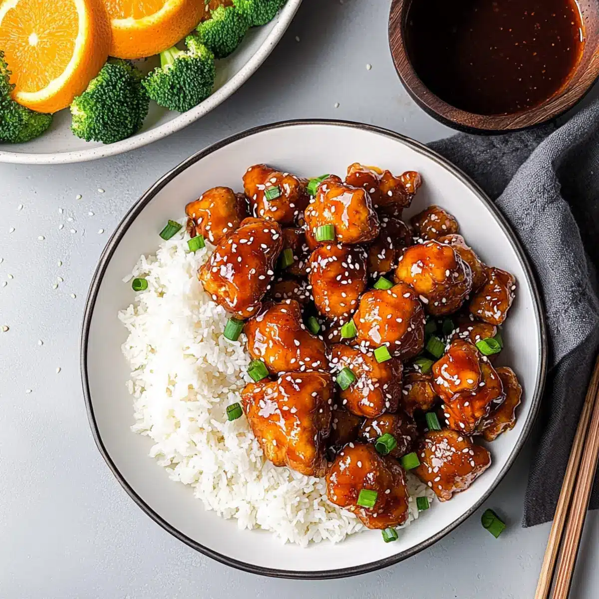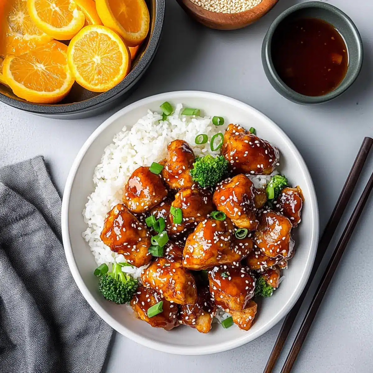 Fluffy Jasmine Rice: A fragrant base that soaks up the citrusy sauce beautifully, making each bite a heavenly experience.