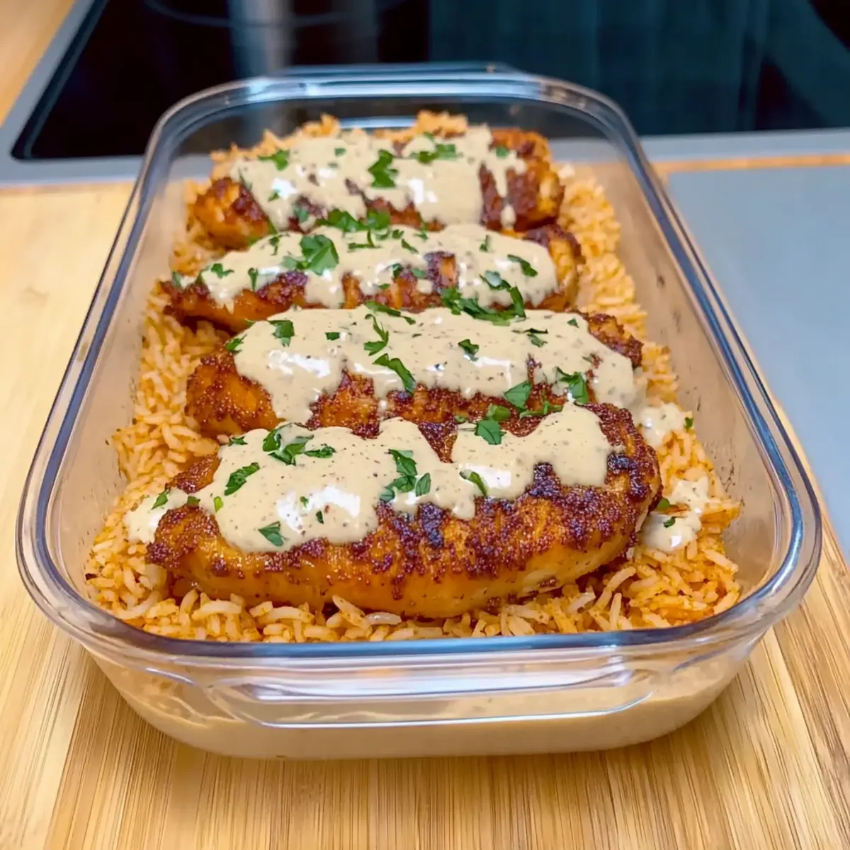 High Protein Creamy Cajun Chicken with Garlic Rice Delight