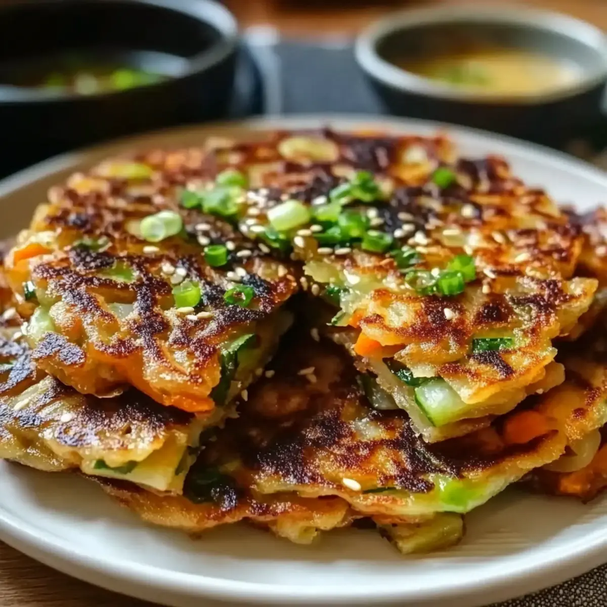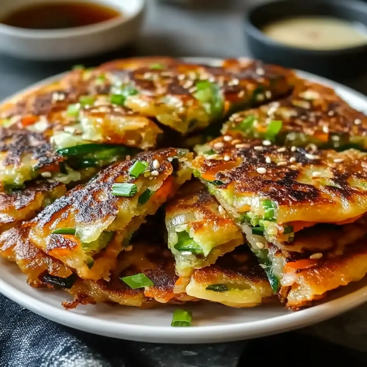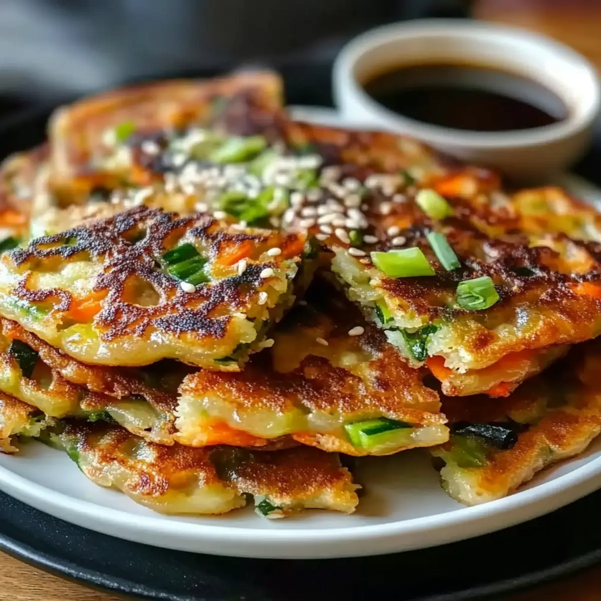 Soy-Based Dipping Sauce: A classic pairing that adds umami and depth, enhancing the savory notes of the pancakes with every dip.