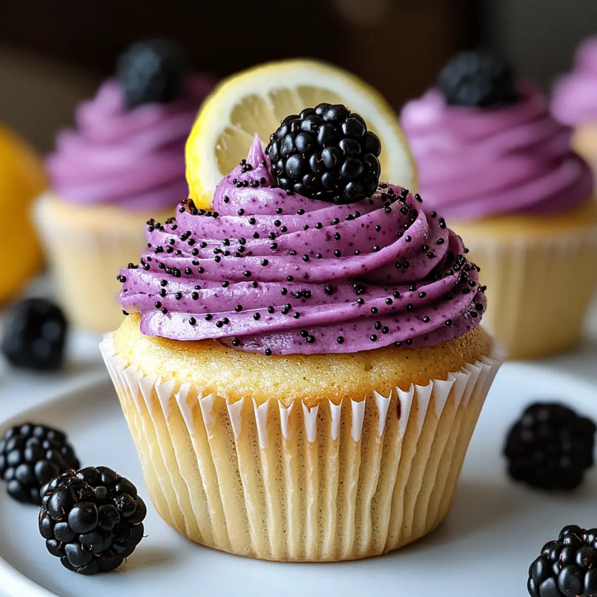 Lemon Poppy Seed Cupcakes with Irresistible Blackberry Frosting