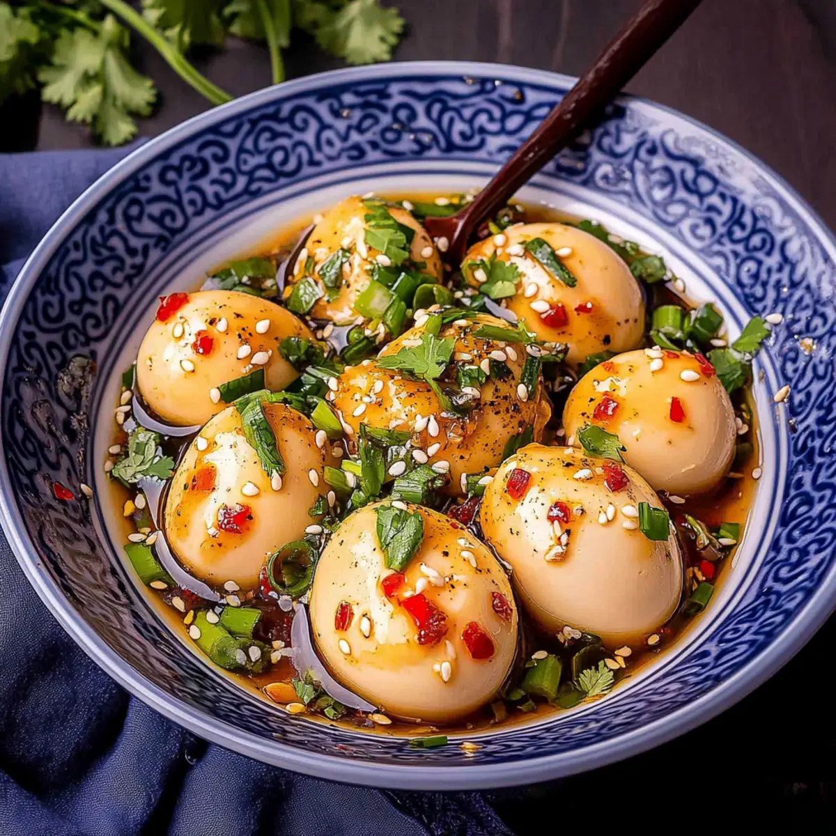 Flavor Explosion: Each bite of these marinated eggs delivers a delightful fusion of soy sauce, garlic, and fresh chili, elevating your palate with bold Asian flavors.
