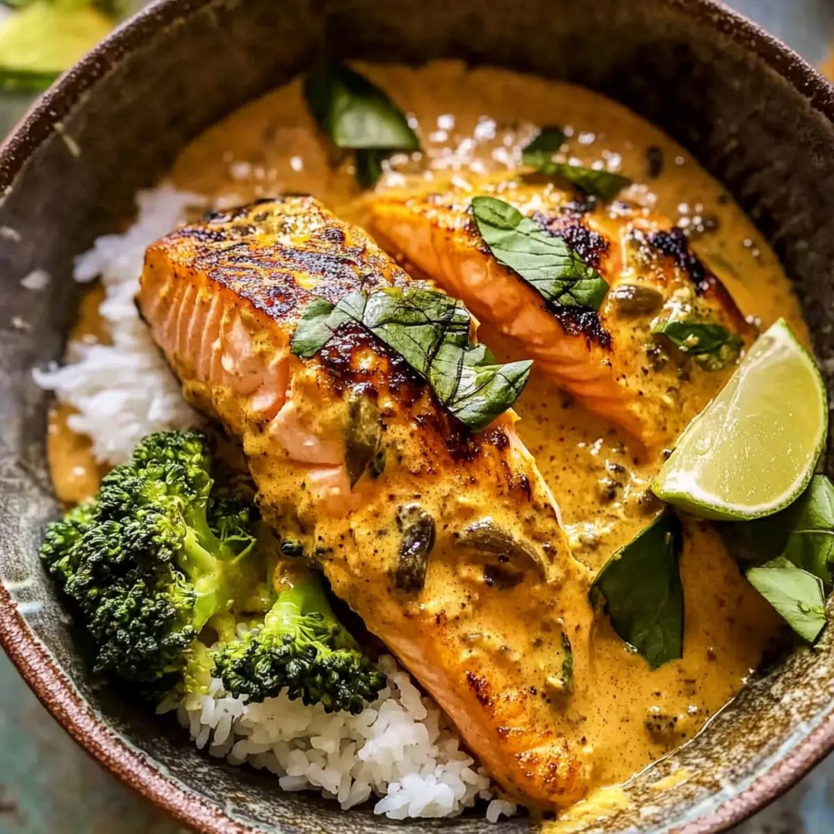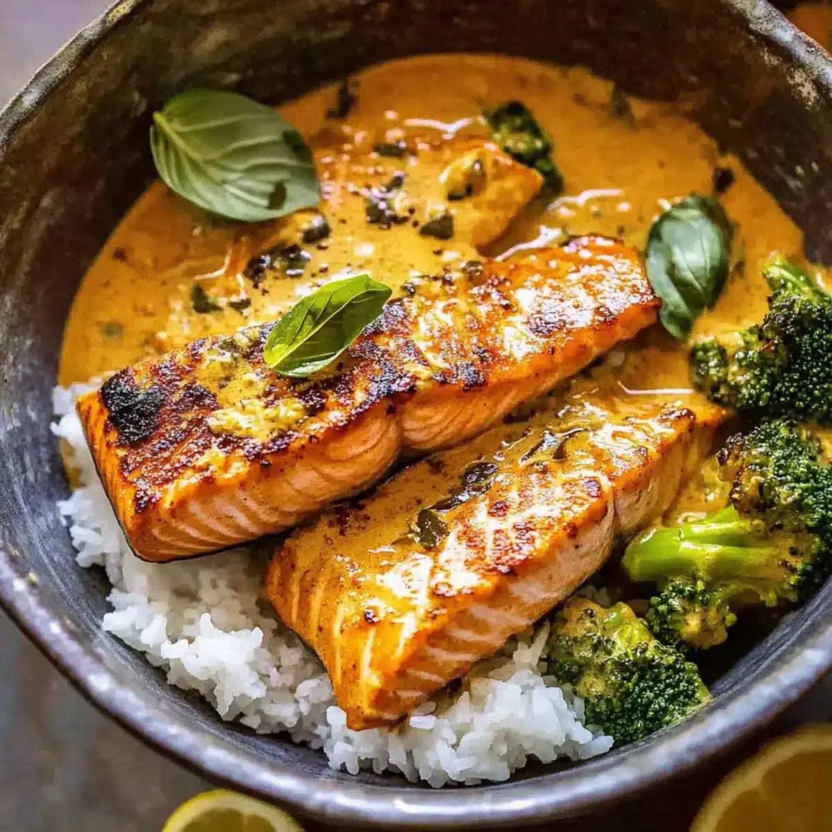 Rich, Creamy Flavor: The combination of coconut milk and garlic butter creates a luxurious base that perfectly complements the succulent salmon.