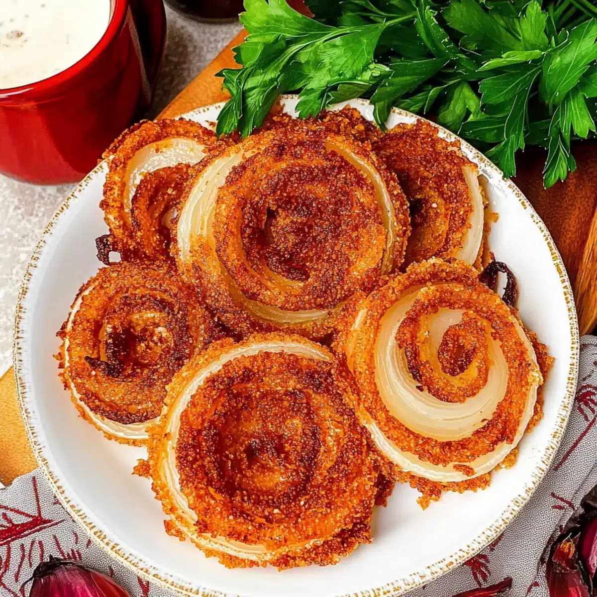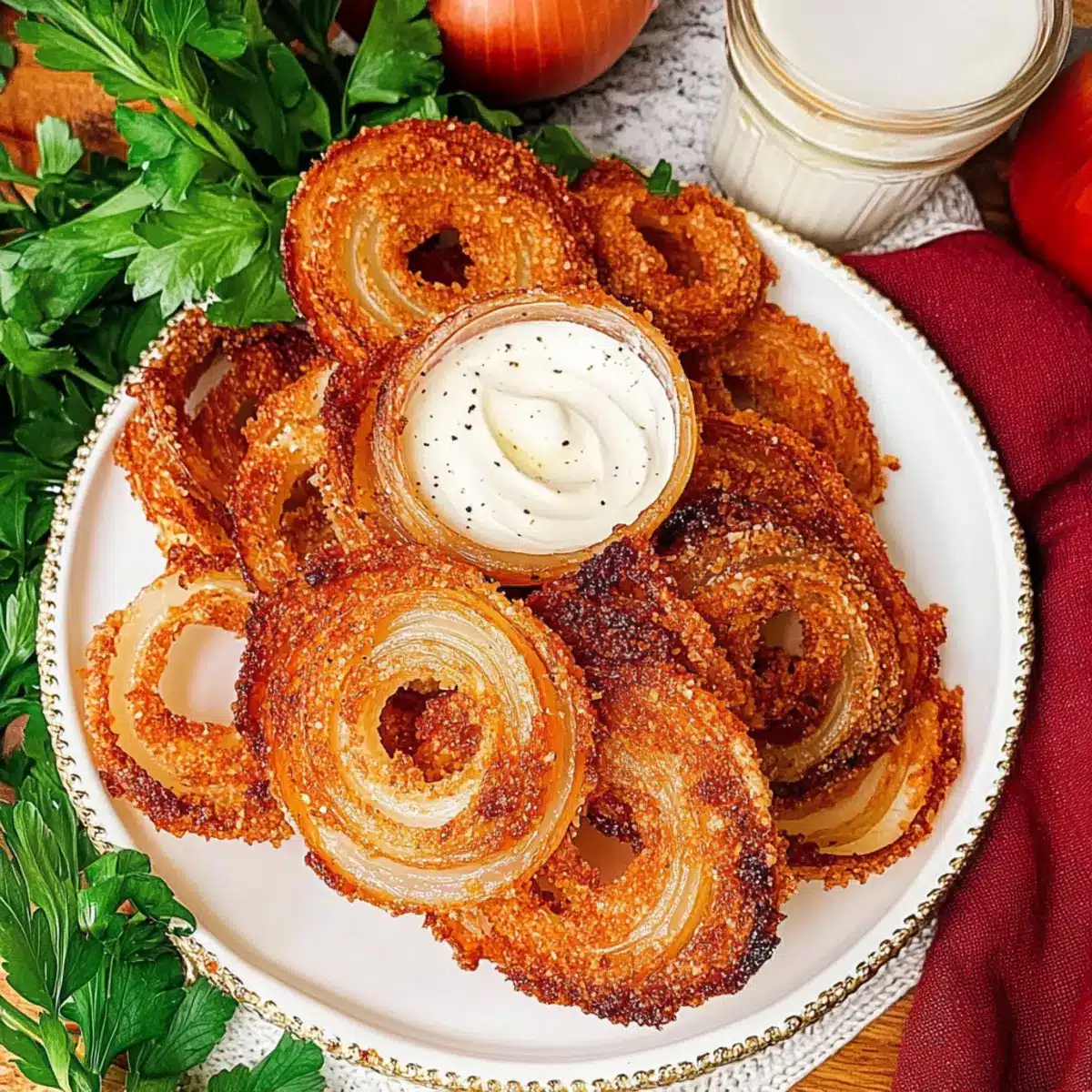 The aroma wafting through my kitchen reminded me of a recent party—everyone raving about the crispy goodness of snacks, and no one guessing they were low-carb! These Viral Onion Ring Chips are a game-changer, combining the familiar flavor of onion rings with the irresistible crunch of parmesan chips. What I love most about them is how effortlessly they come together with just a handful of pantry staples. Not only are they a healthier option for snacking, but they also take just minutes to prepare, making them perfect for busy weeknights or impromptu gatherings. Whether enjoyed solo or paired with your favorite dips, these chips will undoubtedly become a staple in your kitchen. Are you ready to take your snacking to the next level?