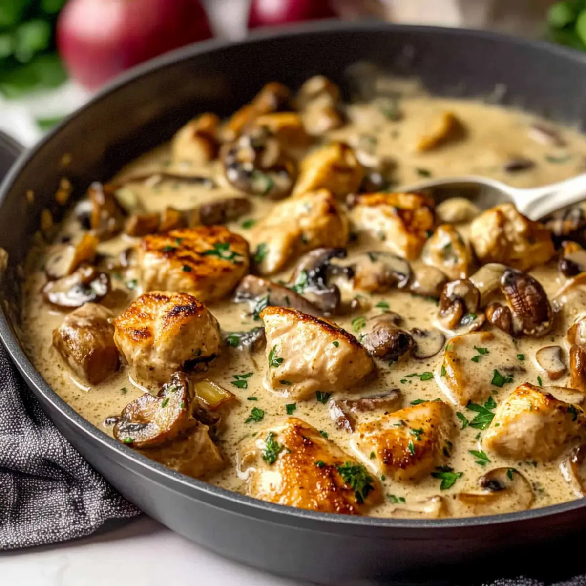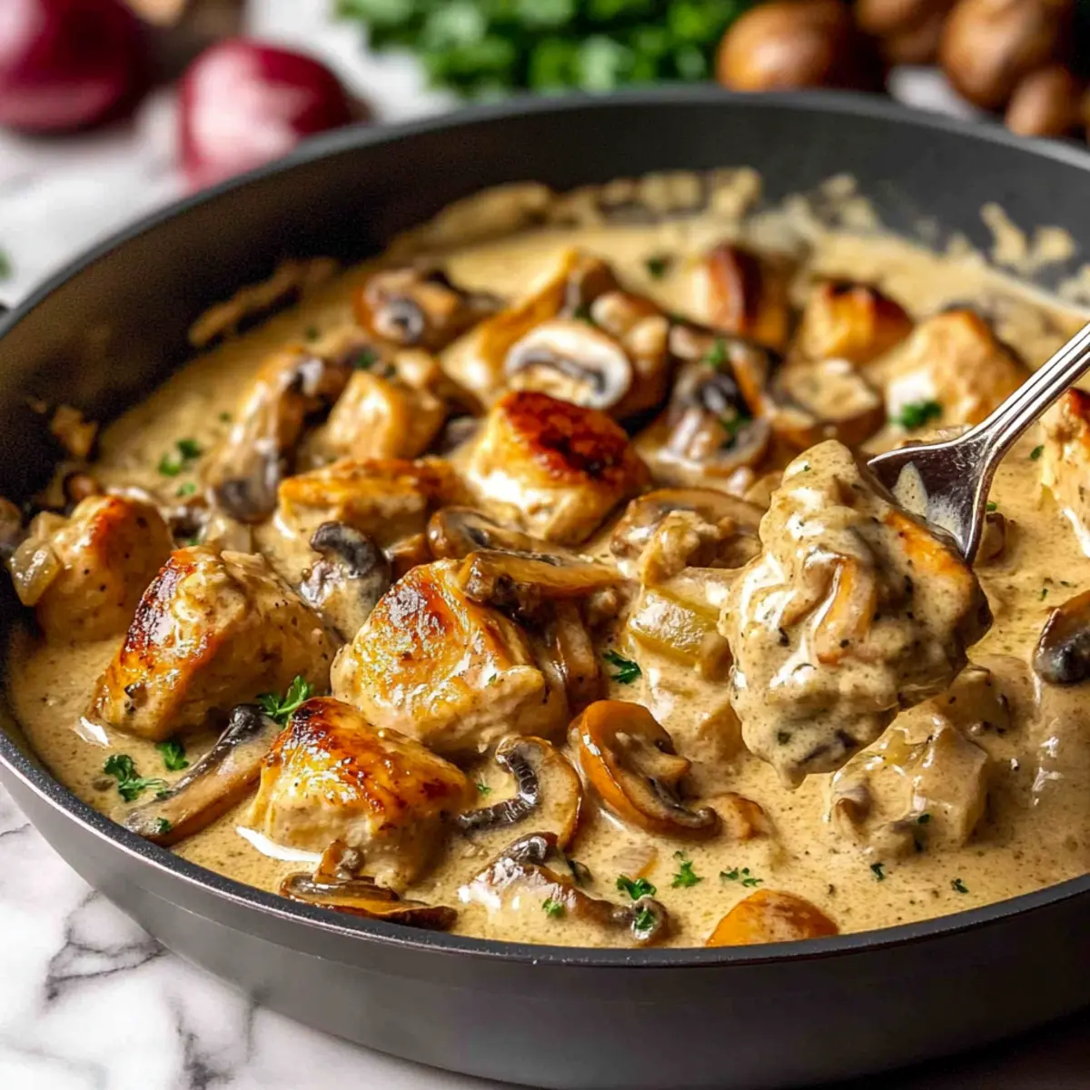 • Full-Fat Sour Cream – Creates that creamy texture synonymous with classic Rich Chicken Stroganoff; Greek yogurt can serve as a lighter alternative.