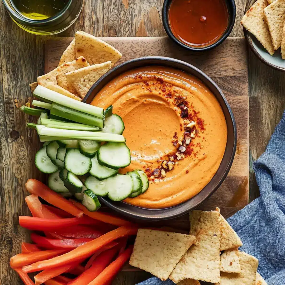 Hummus Platter: Pair the dip with classic hummus for a Mediterranean-inspired trio. The blend of flavors offers variety while keeping the meal healthy and light.