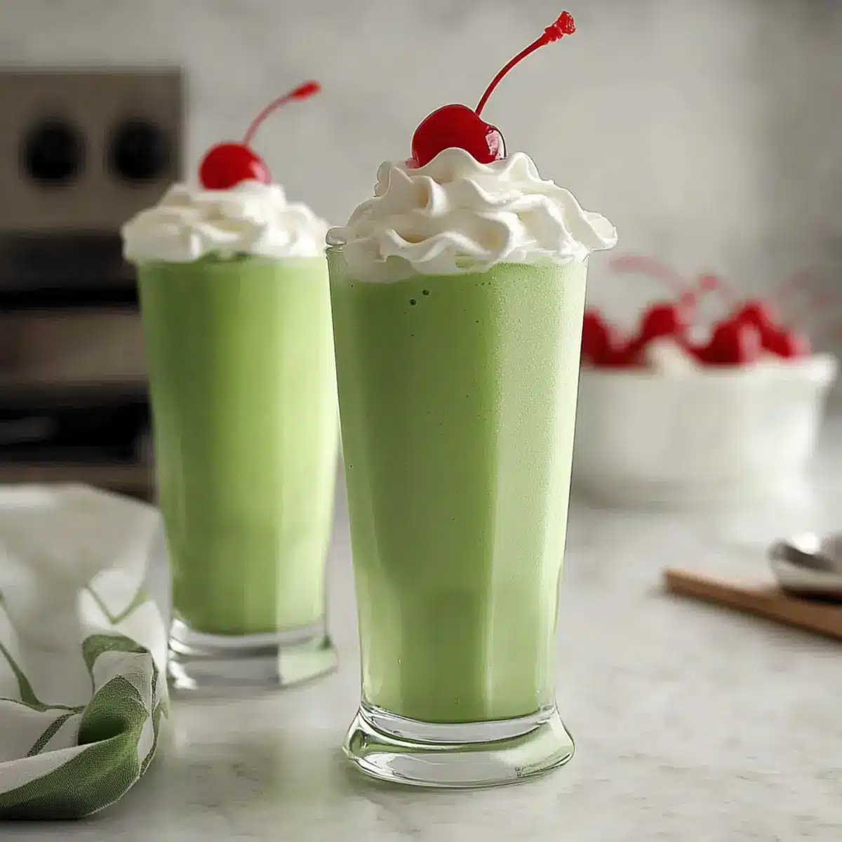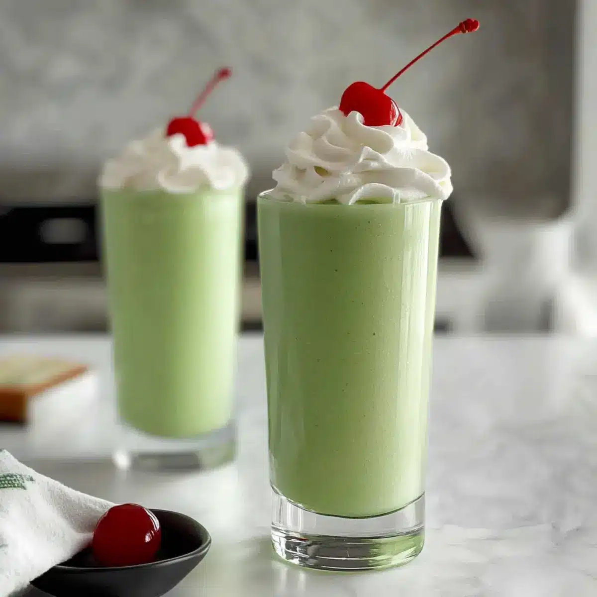 Top each Shamrock Shake with a generous dollop of whipped cream, creating a delightful cloud of cream on top. For an extra special touch, place a vibrant maraschino cherry on each whipped cream peak. The toppings add a festive flair, perfect for any occasion, whether it’s St. Patrick’s Day or a spontaneous treat.