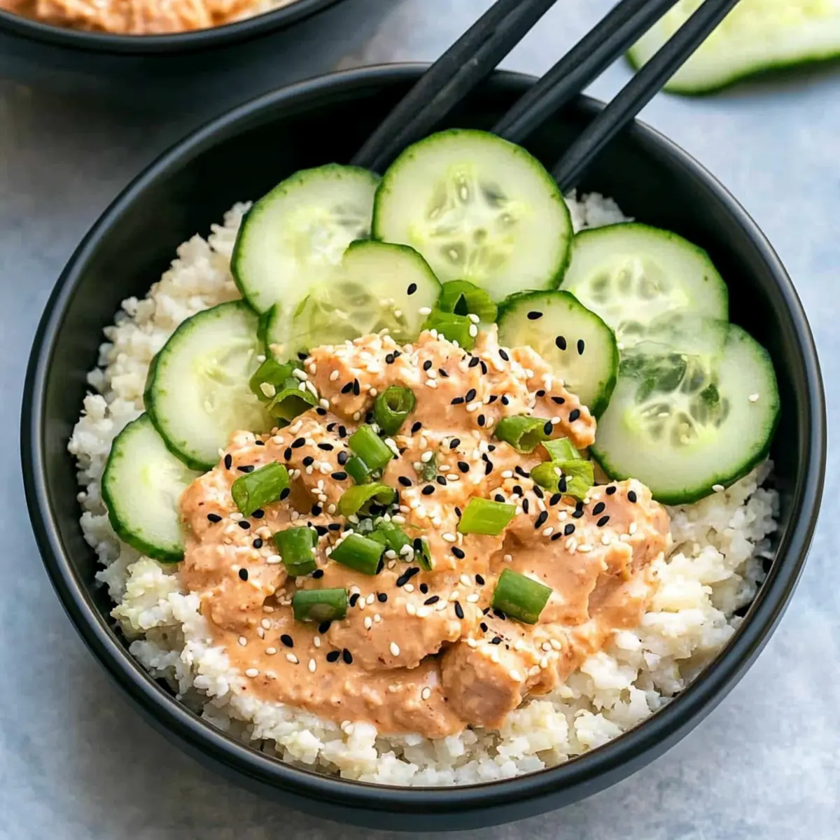 The aroma of a bustling Asian market filled my senses as I stumbled upon a delightful twist on the classic spicy tuna bowl—this time, reimagined for the home kitchen as Spicy Tuna Bowls with Cauliflower Rice. Perfect for those of us on a low-carb journey, this meal prep recipe comes together in just 20 minutes, making it a savior for busy weekdays. Picture tender cauliflower rice topped with creamy, sriracha-laden tuna, vibrant slices of cucumber, and a sprinkle of crunchy sesame seeds—a true flavor feast! Not only does this dish satisfy your taste buds, but it’s also excellent for quick lunches or dinners, helping you say goodbye to takeout temptation. Ready to dive into a bowl that’s as nutritious as it is delicious? Let’s create this Asian-inspired delight together!