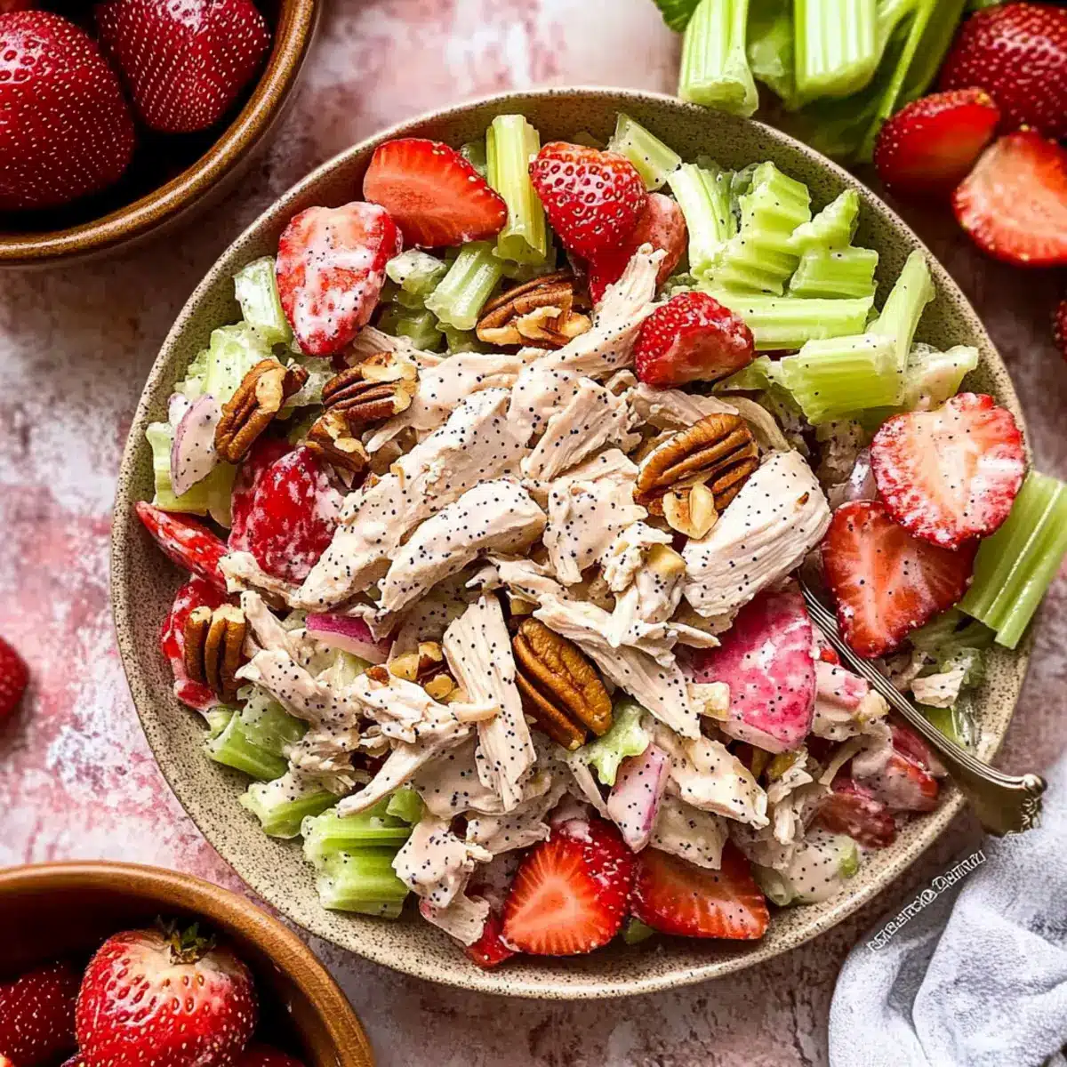 On a sun-drenched afternoon, I found myself craving something light yet satisfying. That’s when I decided to whip up a fresh Strawberry Poppy Seed Chicken Salad. This dish seamlessly combines tender, pulled chicken with the sweetness of ripe strawberries and the crunchy texture of pecans. It’s not just a salad; it’s a refreshing escape from the heavier meals of the week. Gluten-free and high in protein, this recipe is not only easy to prepare but also perfect for a bright summer lunch. Plus, you can enjoy it as a make-ahead option for busy days or picnics. Ready to elevate your salad game? Let’s dive into this delightful recipe!