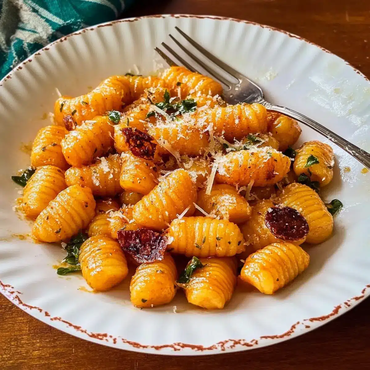 In a skillet, melt butter over medium heat until it starts to foam. Add the boiled gnocchi in a single layer and sauté for about 2-3 minutes on each side until golden brown and crispy. This final touch provides a delightful contrast to the tenderness of the Sweet Potato Gnocchi, ready to serve hot with your favorite sauce or cheese.